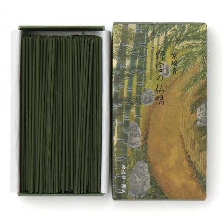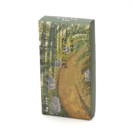 清々しい竹林の中で唱う野仏の優しさをイメージした京線香です。白檀をベースに、龍脳、シダーウッド等を調合した青竹の爽やかな香り。